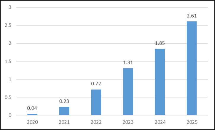 ȪԴ£º https://www.statista.com/statistics/858278/5g-subscriptions-forecast-worldwide/