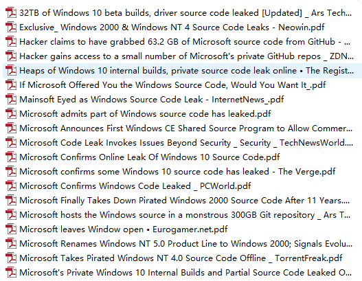 ÏÂÔØµÄ×ÊÁÏÖгýÁ˱¾´ÎÒýÈËעĿµÄWindows XPºÍWindows Server 2003µÄÔ´´úÂ룬ÒÔ¼°Windows NT 3.5¡¢Windows NT 4.0¡¢XboxµÈÏà¹ØµÄÔ´´úÂ룬»¹°üÀ¨ÁË´ó×ÚWindowsÏà¹ØµÄÐÂÎźÍÊÓÆµÄÚÈÝ¡£