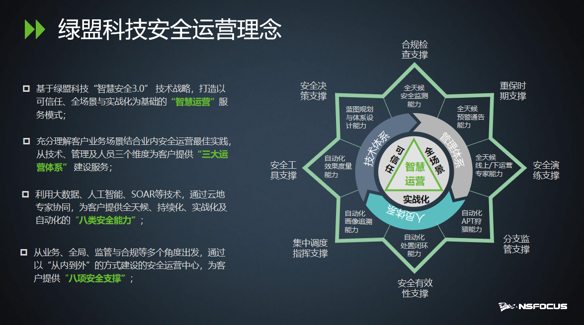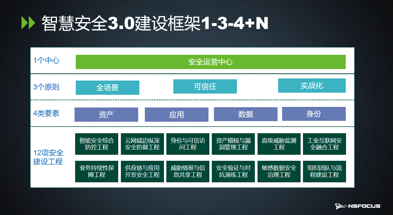 ²¢Ìá³öÒÔ“Çå¾²ÔËÓªÖÐÐĔΪÖÐÐĵÄÖÇ»ÛÇå¾²3.0½¨Éè¿ò¼Ü£¬ÒÔ“×ʲú¡¢Ó¦Óá¢Êý¾Ý¡¢Éí·Ý”ËÄÀàÒªËØÎªÒÀÍУ¬¿ªÕ¹Ê®¶þÏîÇå¾²½¨É蹤³Ì£¬¸³Äܹ¹½¨ÈÚºÏÇå¾²·ÀÓùϵͳ¡£